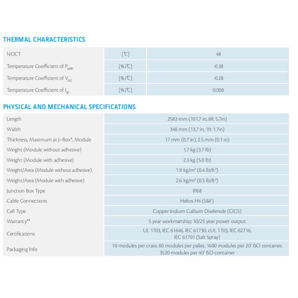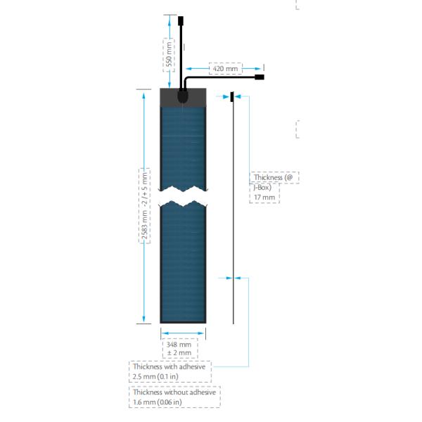2.6 METER .35m X 2.6m 110W –140W CIGS Amorphous Silicon Solar Module FLEX SERIES–03N Images |
